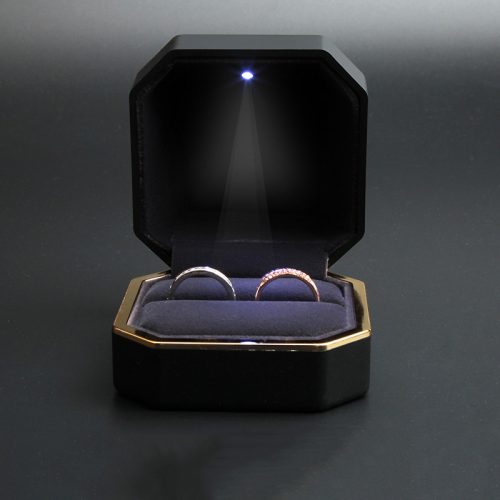 Plastic Hexagon Luxury Velvet Insert Light Ring Box LED with Led Light for women